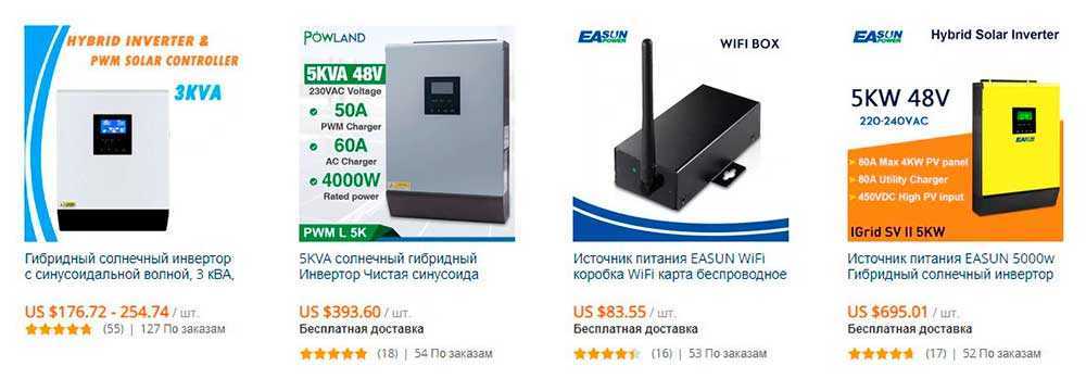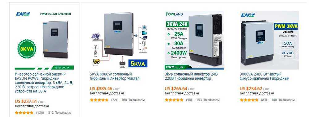 Любители сэкономить могут заказать гибридный инвертор на сайте AliExpress. Здесь можно найти устройства в широком ценовом диапазоне от 40 до 400 долларов