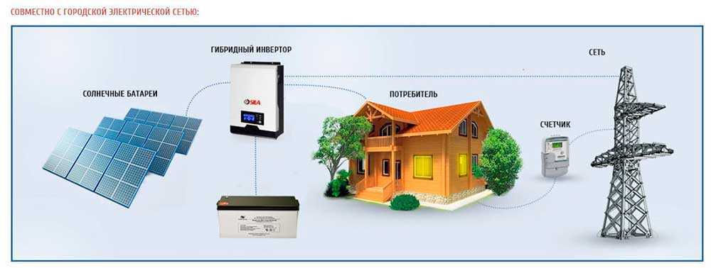 - Подключение фотоэлектрического инвертора сети на выходе.