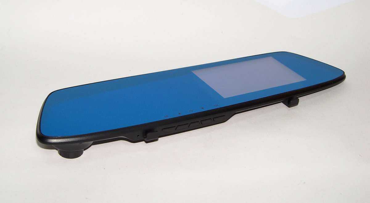 Эта модель от китайского производителя стоимостью около 3 тыс. руб. имеет вид накладки на зеркало и оснащается камерой с углом обзора 120°. Видеорегистратор получил экран 4,3” с разрешением 480х272 точки, транслирующий изображение в FHD 30 к/сек с главной камеры. Запись в максимальном качестве занимает довольно много места – 700 Мб за 3 минуты. Детализация изображения находится тут на среднем уровне, помехи есть, но незначительные, позволяющие различить номерные знаки и изучить дорожную ситуацию. В ночное время суток дальность распознавания автомобильных номеров сокращается до 2 м. Шумы у этой модели – естественная ситуация для бюджетного сегмента.