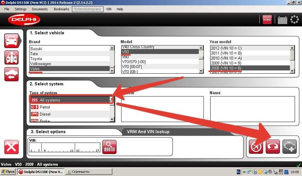Delphi DS150E 2014 Release 2 (2.14.2.2)С общими моментами разобрались, давайте поглядим на конкретные программы. Первой осмотрим Delphi DS150E (New VCI). Начну с того, что функциональность программы строго утилитарна и относится к сканеру и функциям выполняемым им: каталог марок и моделей, доступные для взаимодействия системы и — в случаях, когда это требуется — подсказки по выполнению процедур. Хочу заметить, что несмотря на то, что программа имеет русификацию, выполнена она из рук вон плохо (чего стоит кнопка “ОК”, переведенная как “В норме”). Проще использовать английский вариант, там хотя бы возможно нагуглить однозначный и правильный вариант перевода термина.