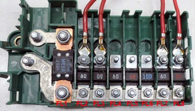 | FL7 | 80А Блок предохранителей №1 в багажном отделении, предохранители 83-87 |