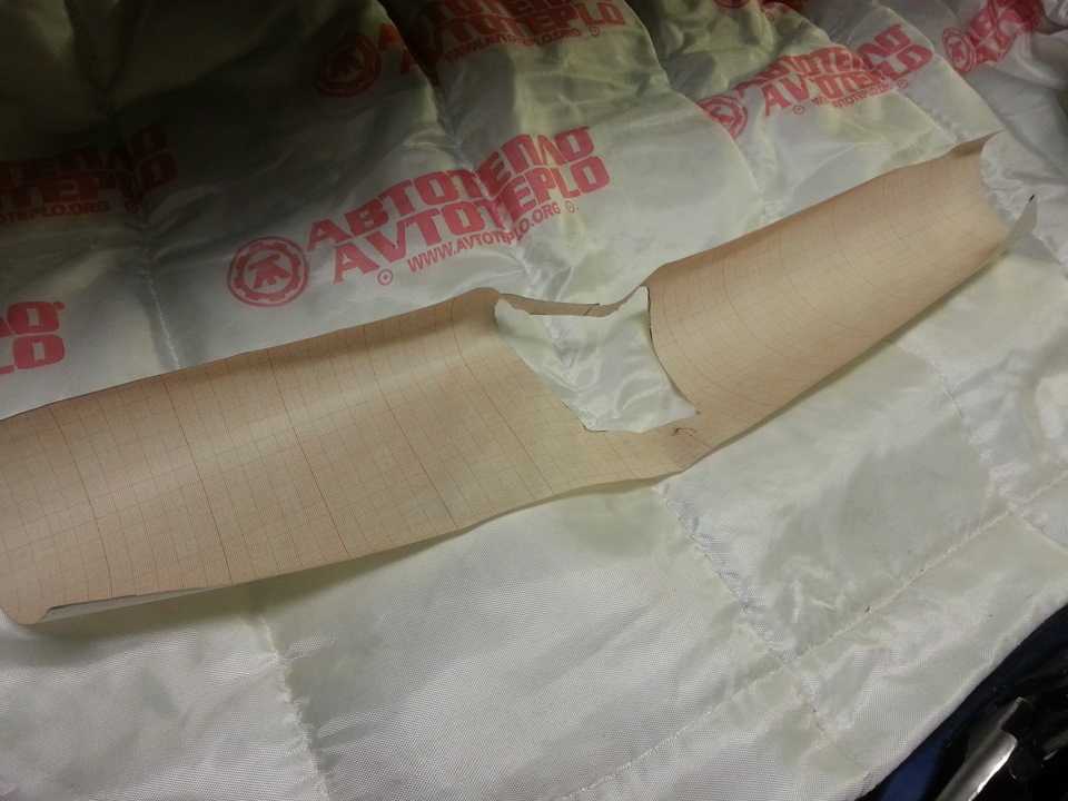 - Полипропилен с фольгированным слоем (изолон). Крепится с внутренней стороны бампера и решетки на пластиковые хомуты. Вырезается по выкройке.