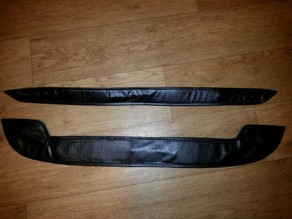 - Искусственная кожа. По выкройке, сделанной с наружной стороны передка, оформляется чехол. Обычно нашивается тесьма по контуру и делаются декоративные строчки по всей поверхности. Крепление осуществляется пластиковыми хомутами.