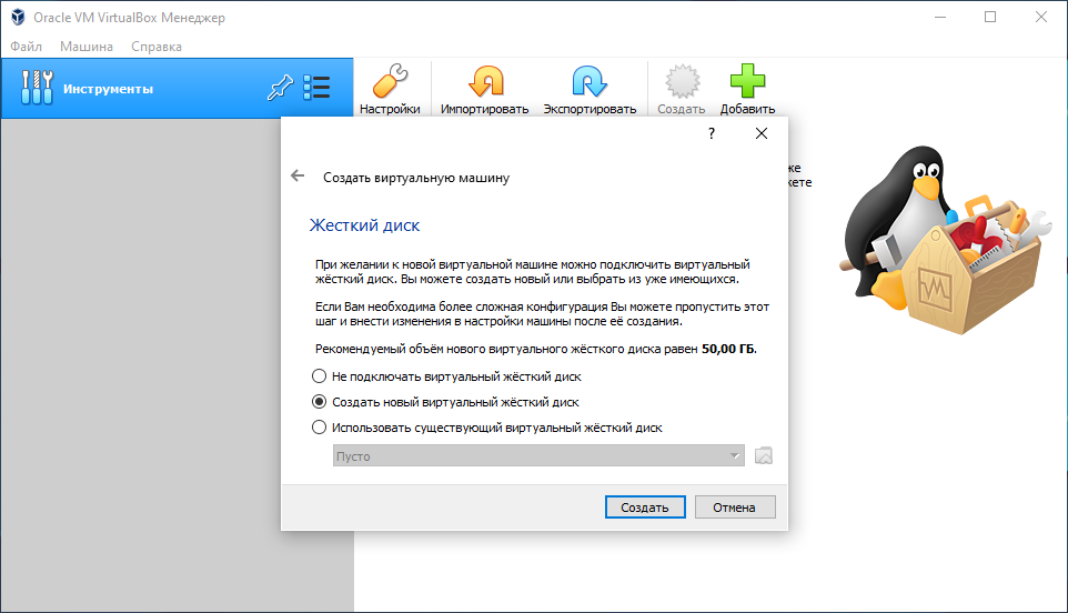После всех этапов нажимаете кнопку «Создать». Первичный процесс завершен, но это еще не все. После потребуется настройка и непосредственно инструкция как установить Windows в VirtualBox.