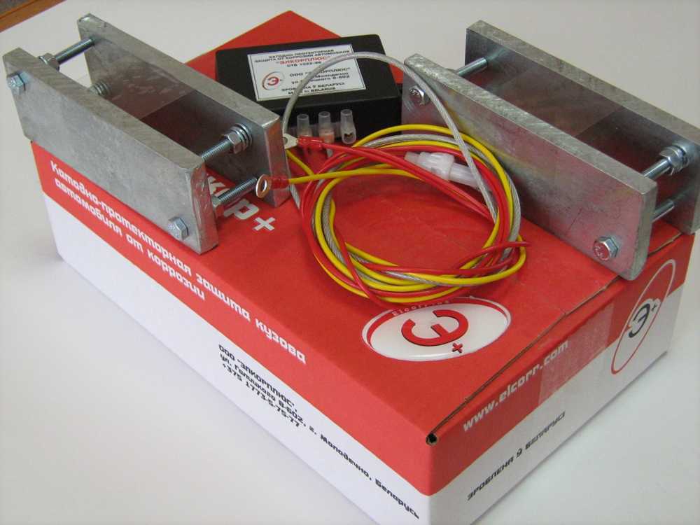 Рассматриваемая технология для автомобилей предполагает использование в качестве катода (отрицательно заряженного полюса) кузова, а анодами (положительно заряженными полюсами) служат различные окружающие объекты или установленные на автомобиле элементы, проводящие ток, например, металлические сооружения или влажное дорожное покрытие. При этом анод должен состоять из активного металла, такого как магний, цинк, хром, алюминий.