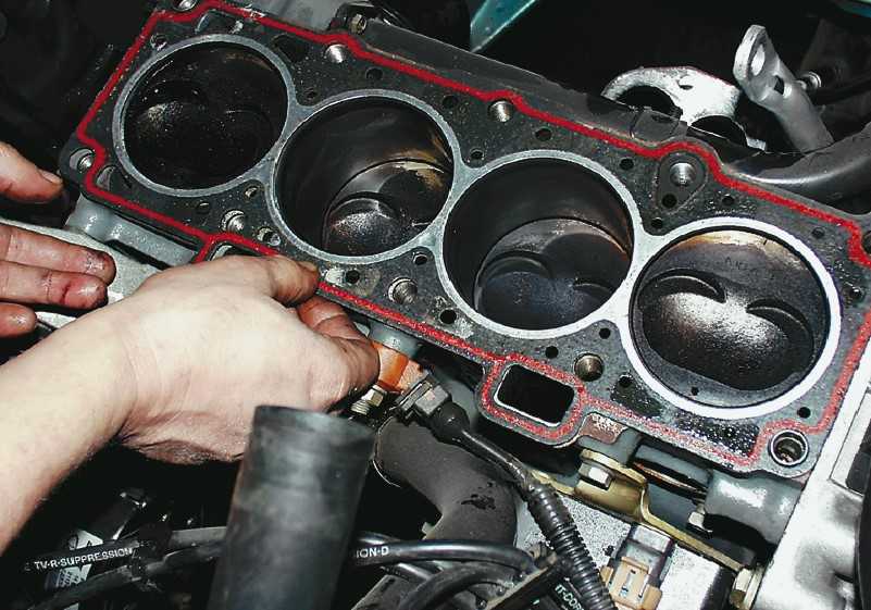 Очистите отверстия под болты, которыми закрепляют головку в блоке.