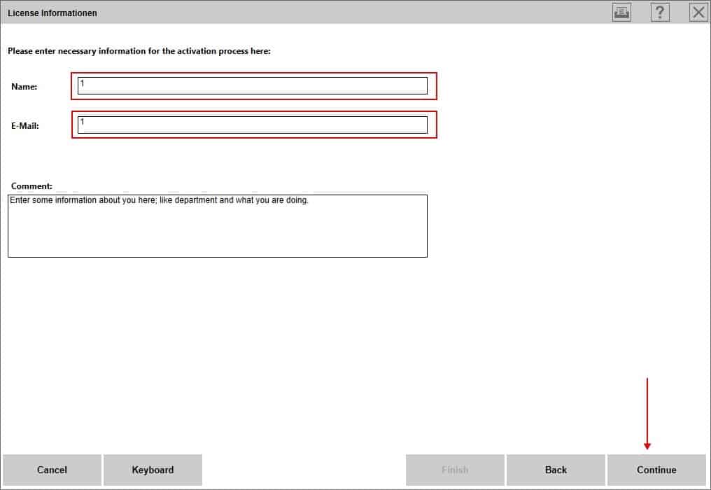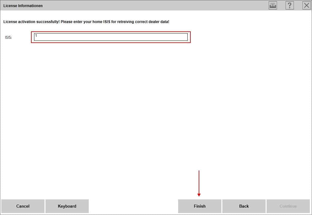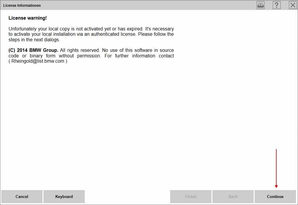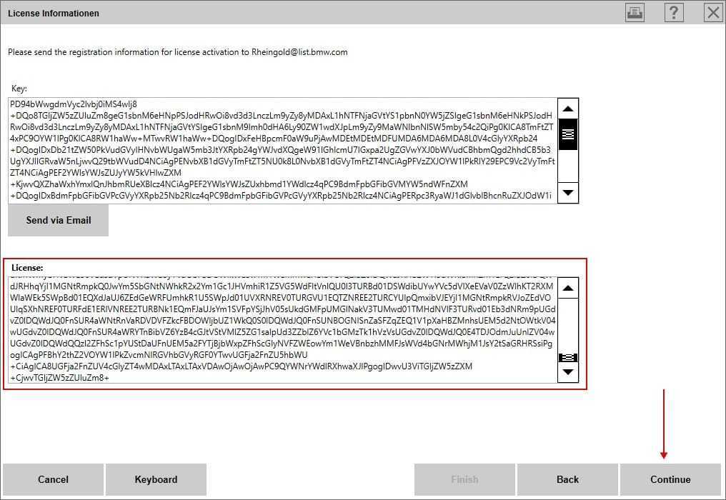 6. Вставьте скопированный код в окно и нажмите кнопку «Continue». После этого программа для сканера БМВ ISTA P закроется.