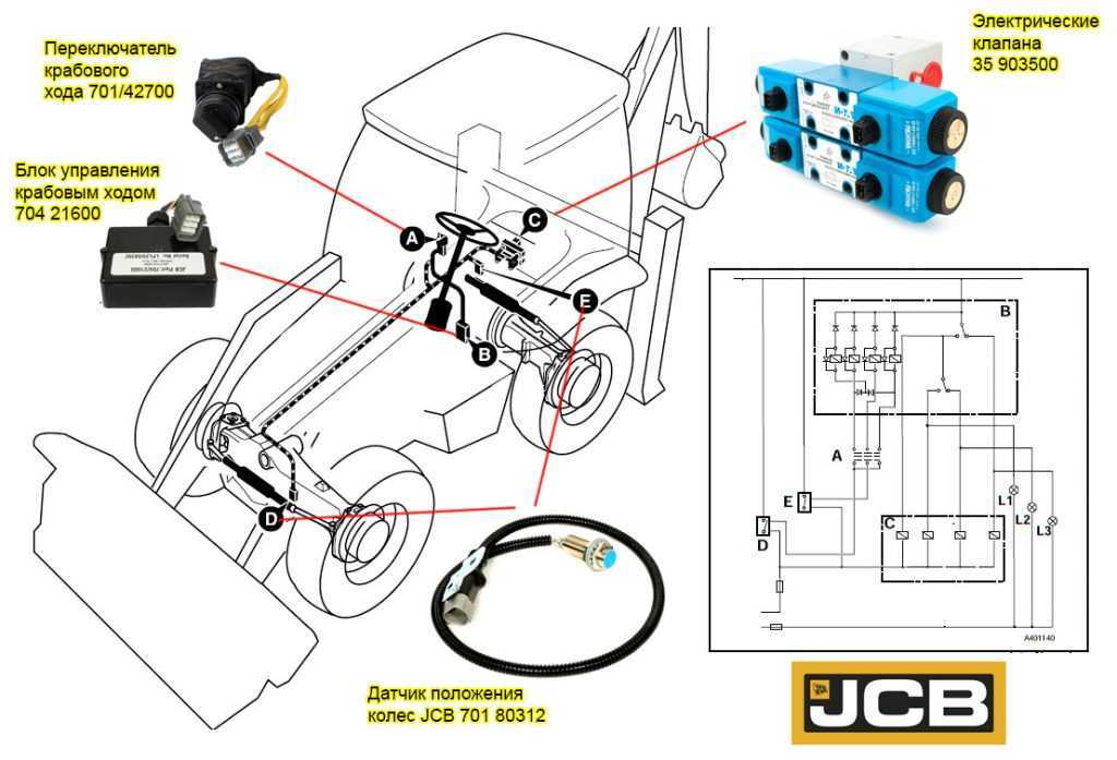 Принцип работы системы рулевого управления 2WS, 4WS, крабовый ход JCB 3CX 4CX