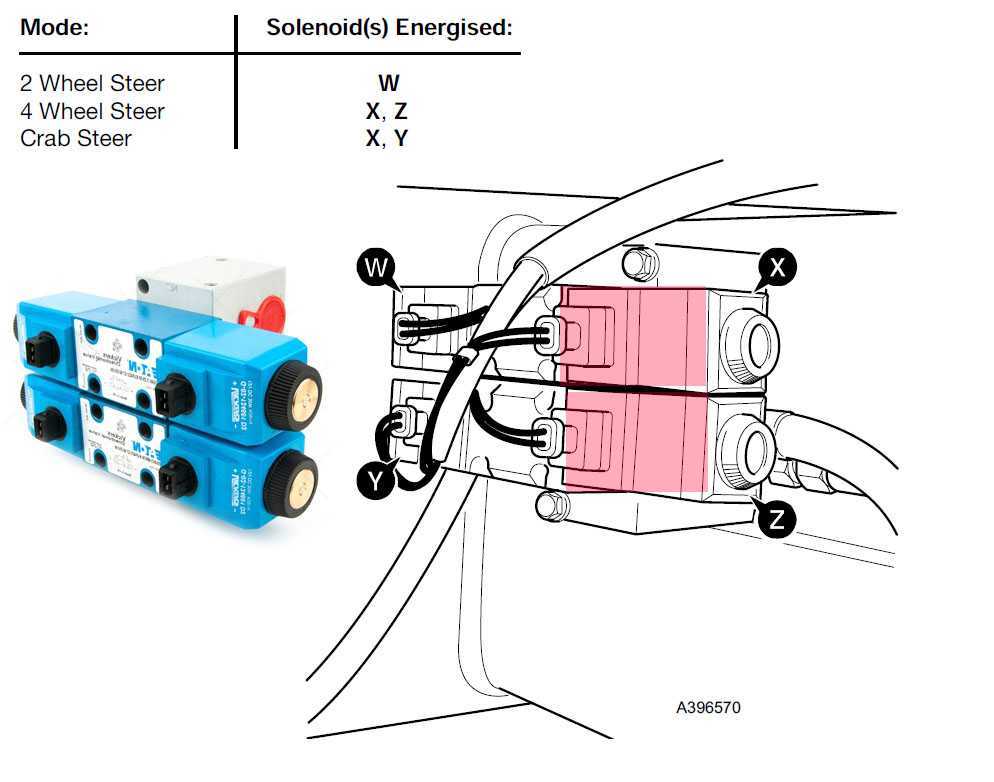 Этот переключатель управляет электронной платой в блоке управления режимами рулевого управления “B” (704/21600) — Блока крабового хода.
