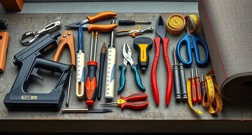 Для успешной перетяжки сидений своими руками вам понадобится определенный набор инструментов и материалов. Не стоит экономить на качестве, ведь от этого зависит конечный результат и долговечность вашей работы. Я сама поначалу недооценивала важность хорошего степлера, и пришлось переделывать часть работы.