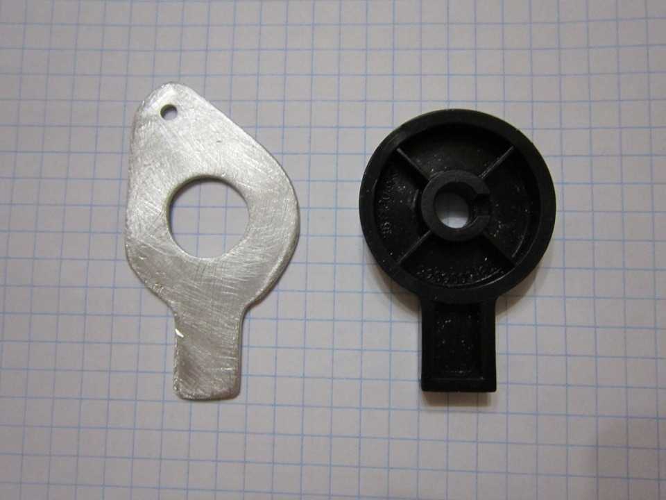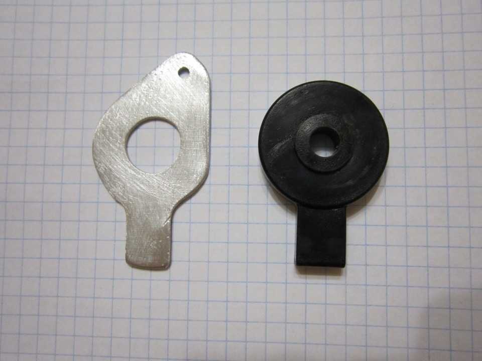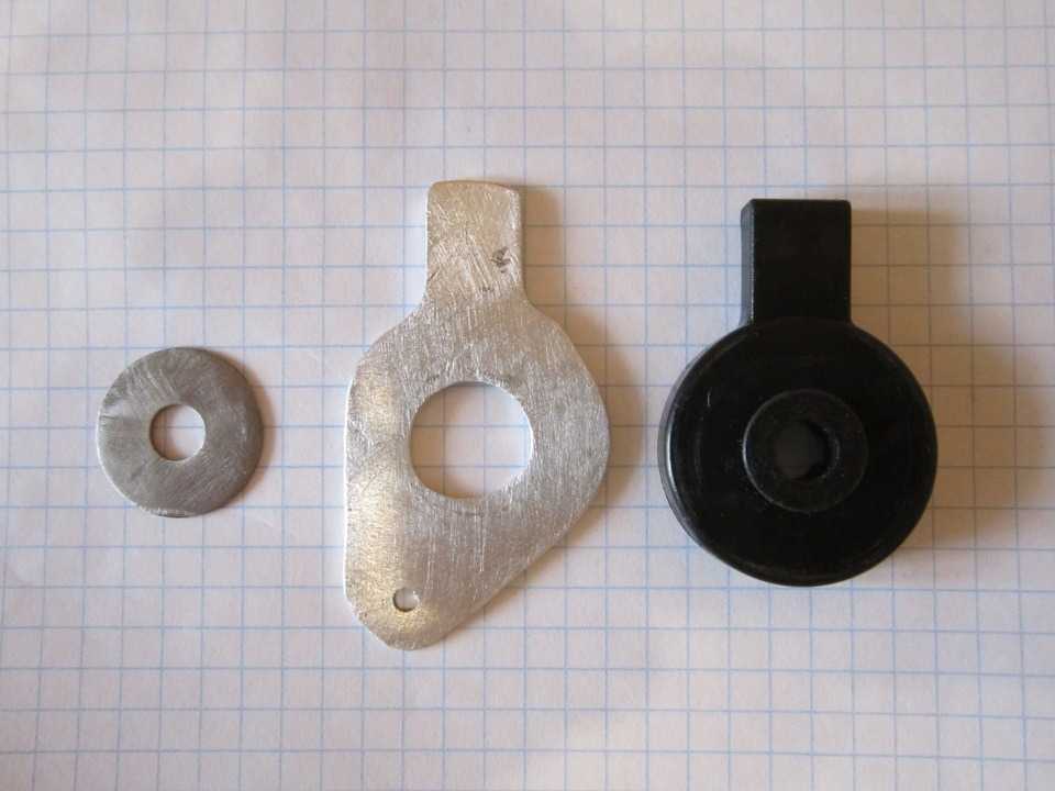 Еще понадобится обычная шайба с внутренним диаметром = внутреннему диаметру пластикового толкателя. Толщина шайбы должна быть очень маленькой чтобы всю систему можно было собрать, вот фото:
