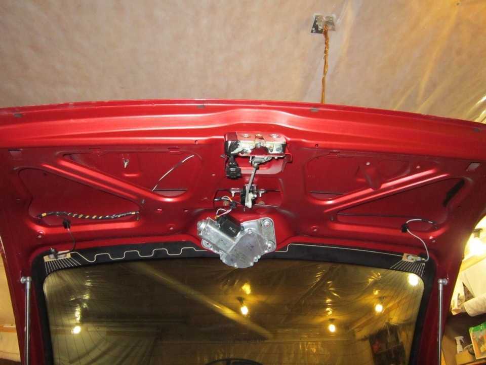 Для ремонта замка пятой двери Калина хэтчбек или универсал, либо замены моторедуктора очистителя придется сначала снять обивку пятой двери.