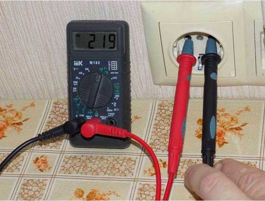 Сначала можно рассмотреть, как измерить напряжение мультиметром в розетке. Эта операция выполняется по следующему алгоритму: