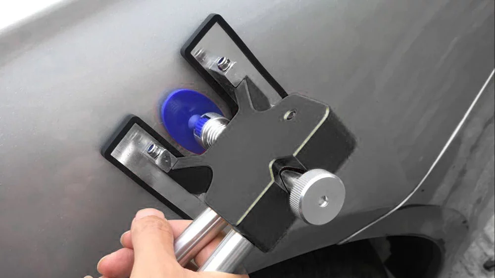 Мастера в автосервисах, чтобы убрать на машине без покраски сильные углубления, используют специализированное оборудование. Вы также можете его приобрести и сделать монтаж самостоятельно!