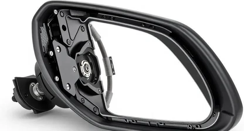 - Демонтаж старого элемента: Аккуратно снимите декоративную накладку зеркала. Обычно она крепится на клипсах. Используйте пластиковую лопатку, чтобы не повредить накладку.