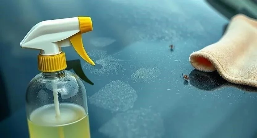 - Как удалить засохшие следы насекомых? Используйте специализированные средства для удаления насекомых и дайте им подействовать дольше.
