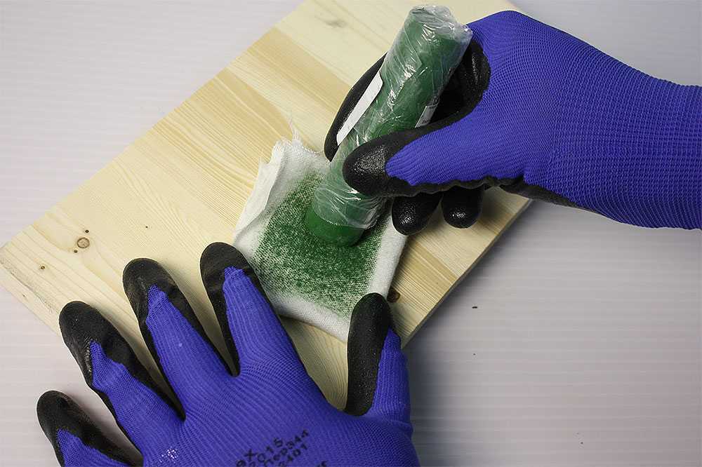 - жидкость втирается в брусок с помощью фланелевой или хлопчатобумажной ткани, пока паста по консистенции не станет похожа на пластилин;