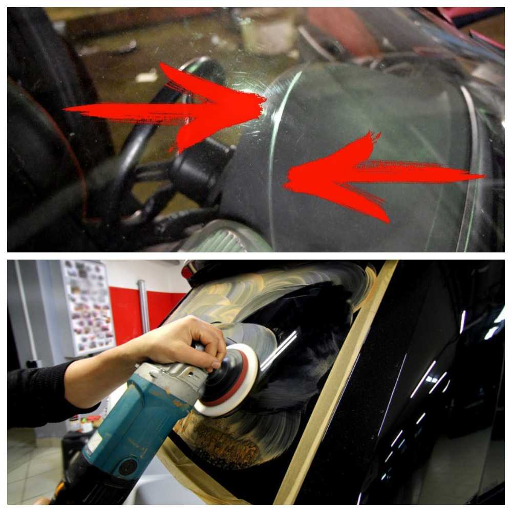 Если царапины полируются слабо, можно пробовать чуть сильнее давить на шлифовальную машинку, менять подачу воды, пробовать другие диски. Но, вообще, стекло полируется дольше, чем краска, поэтому лучше просто заранее запастись терпением. Через несколько подходов смывки, анализа результата и нанесения пасты будет достигнут желаемый результат.