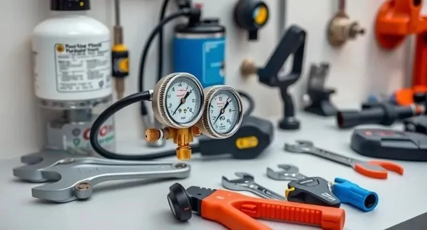 - Манометрический коллектор для заправки и диагностики.