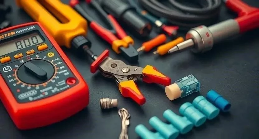 Ответ: Мультиметр, тестер, набор отверток, плоскогубцы, кусачки, изолента, термоусадочная трубка, паяльник, припой, клеммы.