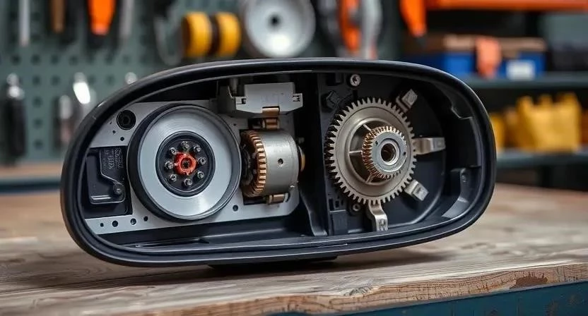 Чаще всего ломается пластиковая шестеренка механизма складывания. Замена шестеренки – относительно простая процедура. Сначала нужно разобрать зеркало, отсоединить механизм складывания и заменить шестеренку. После этого механизм нужно очистить от старой смазки и смазать новой. Я использовала литиевую смазку, она отлично подходит для этих целей. Представь, как приятно снова видеть, что зеркало складывается без скрипа и заеданий!