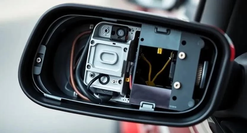 - Извлеките внутренние компоненты зеркала, такие как моторчик регулировки, нагревательный элемент и поворотник.