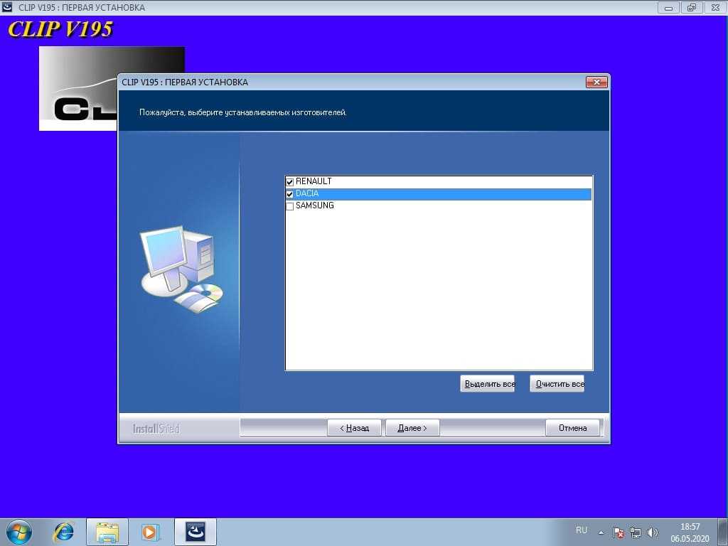 9. Ставим «птички» в требуемых пунктах (при установке я оставил марки Renault и Dacia, но Вы можете выбрать все) и жмем кнопку «Далее».
