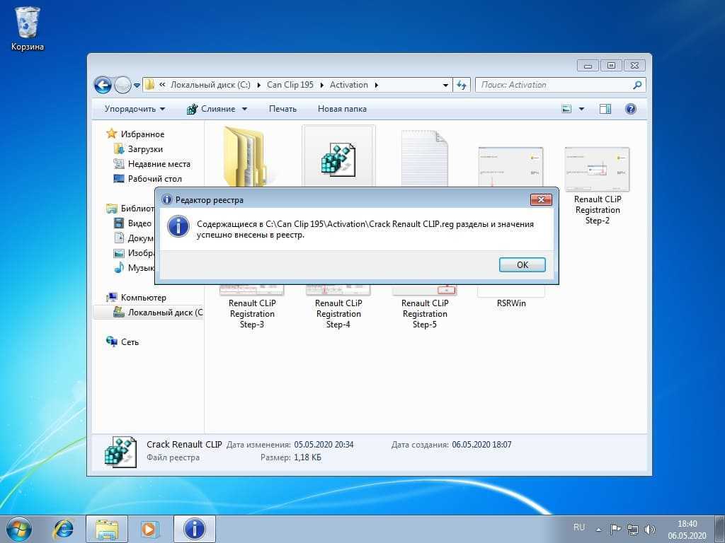 Перед первой установкой необходимо запустить файл Crack Renault CLIP.reg из архива и согласится на внесение изменений в реестр
