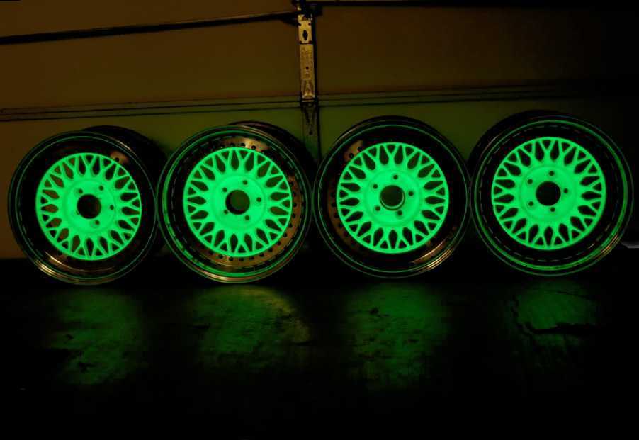 Категорически не рекомендуется наносить люминофорную краску на диски старых иномарок или раритетных машин, которые были выпущены во времена Советского Союза. Эффект накопления света имеет свойство уменьшаться по прошествии определенного промежутка времени, и если на диски было нанесено дешевое средство, результат будет держаться не более 2 месяцев.