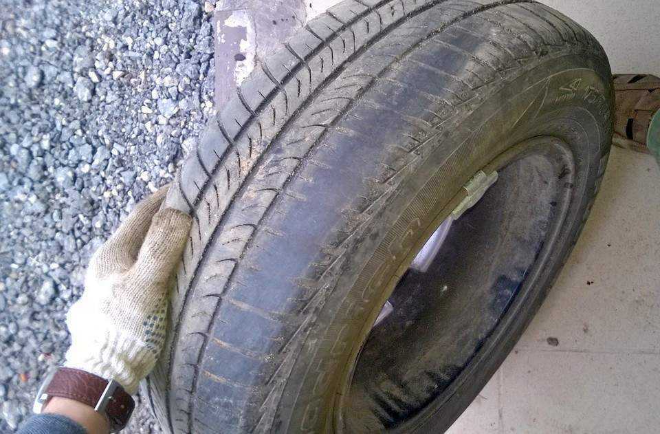 Инородные предметы: часто застревают между элементами рисунка протектора. Большинство из них легко убираются с поверхности шины. Но если вам кажется, что застрявший предмет (например, гвоздь) проткнул шину, не вынимайте его сами, а обратитесь к специалистам на СТО. В противном случае вы рискуете остаться со спущенной шиной;