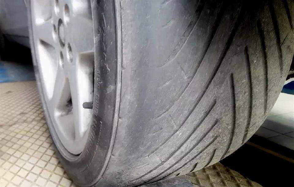Износ с наружной стороны: если шина изношена с обеих боковых граней, ее необходимо накачать и проверить на наличие утечки воздуха. Потеря давления в шинах — обычное явление, однако при движении на недокачанных шинах увеличивается расход топлива и возрастает риск ДТП. Более заметный износ граней на передних шинах говорит о том, что вы недостаточно сбрасываете скорость на поворотах