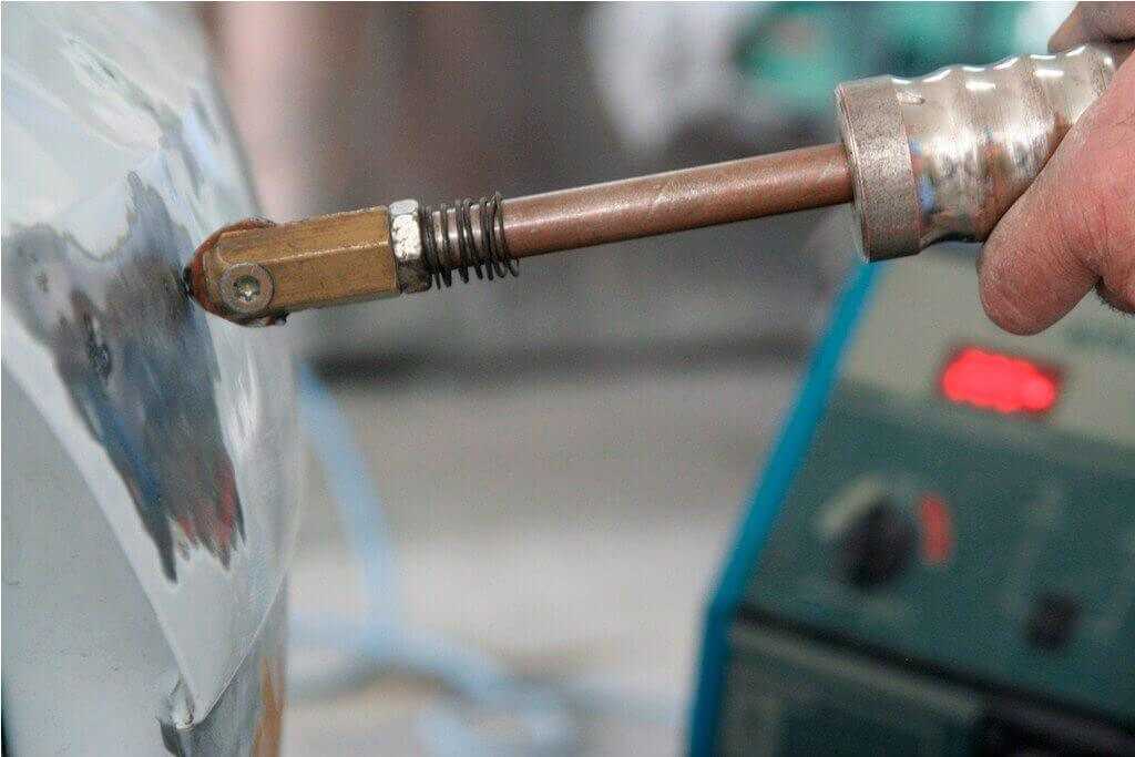 Точечную сварку выполняют с помощью поступающего тока, а затем локальная поверхность выравнивается упором или инерционным молотком. Благодаря таким манипуляциям достаточно быстро поврежденная часть автомобиля вытянется в исходное положение.