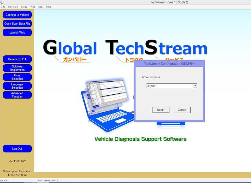 Подключаете MVCI кабель в USB интерфейс, запустите программу, при запуске программы у вас вылезет окно в котором вам нужно будет выбрать “Area selection” -“выбор области” в нашем случае, для какого рынка машина произведена, Далее выбор языка, Английский, далее забиваем все пустые чем угодно, в пункте “repairer region”