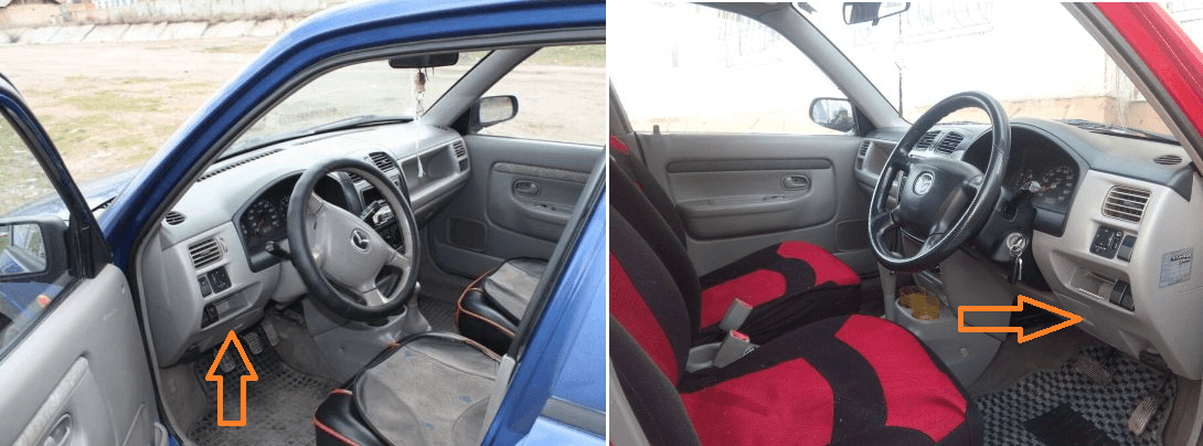 Расположение предохранителей Мазда Демио в салоне с левым и правым положением руля