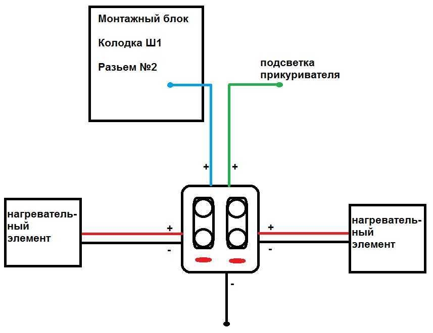 - Проверяем на правильность подключения, то есть права кнопка должна отвечать за правое сидение. Если наоборот, вынимаем кнопку и меняем провода местами.