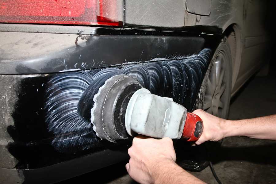 Окрашивание – это, конечно же, намного более обстоятельный и сложный процесс, который требует специальных инструментов и материалов. Начинается любая покраска с очистки бампера, при этом неважно, собираетесь ли вы его снимать или проводить все работы прямо на месте. Как и в предыдущем случае, деталь нужно вымыть, высушить и обезжирить. Для полировки и снятия старого покрытия вам понадобится шлифовальная машинка, а также наждачная бумага разной степени зернистости