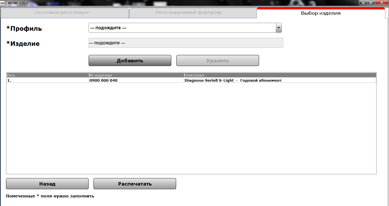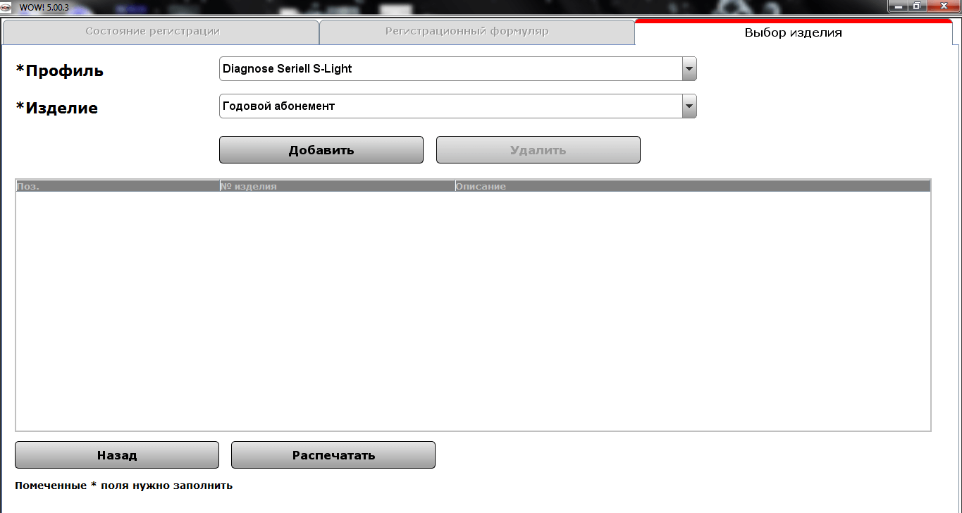 16. Выбираем профиль «Diagnose Seriell S-Light» и изделие «Годовой абонемент», нажмаем «Добавить».