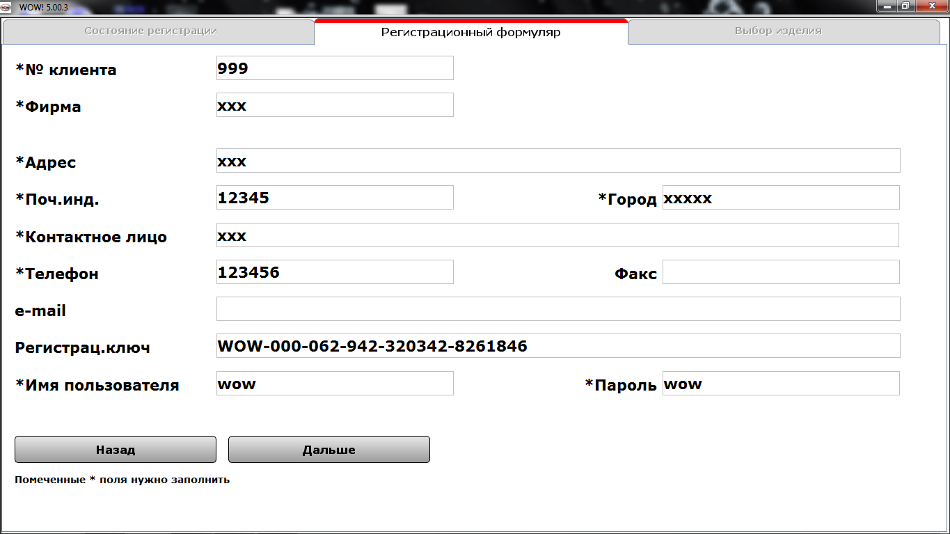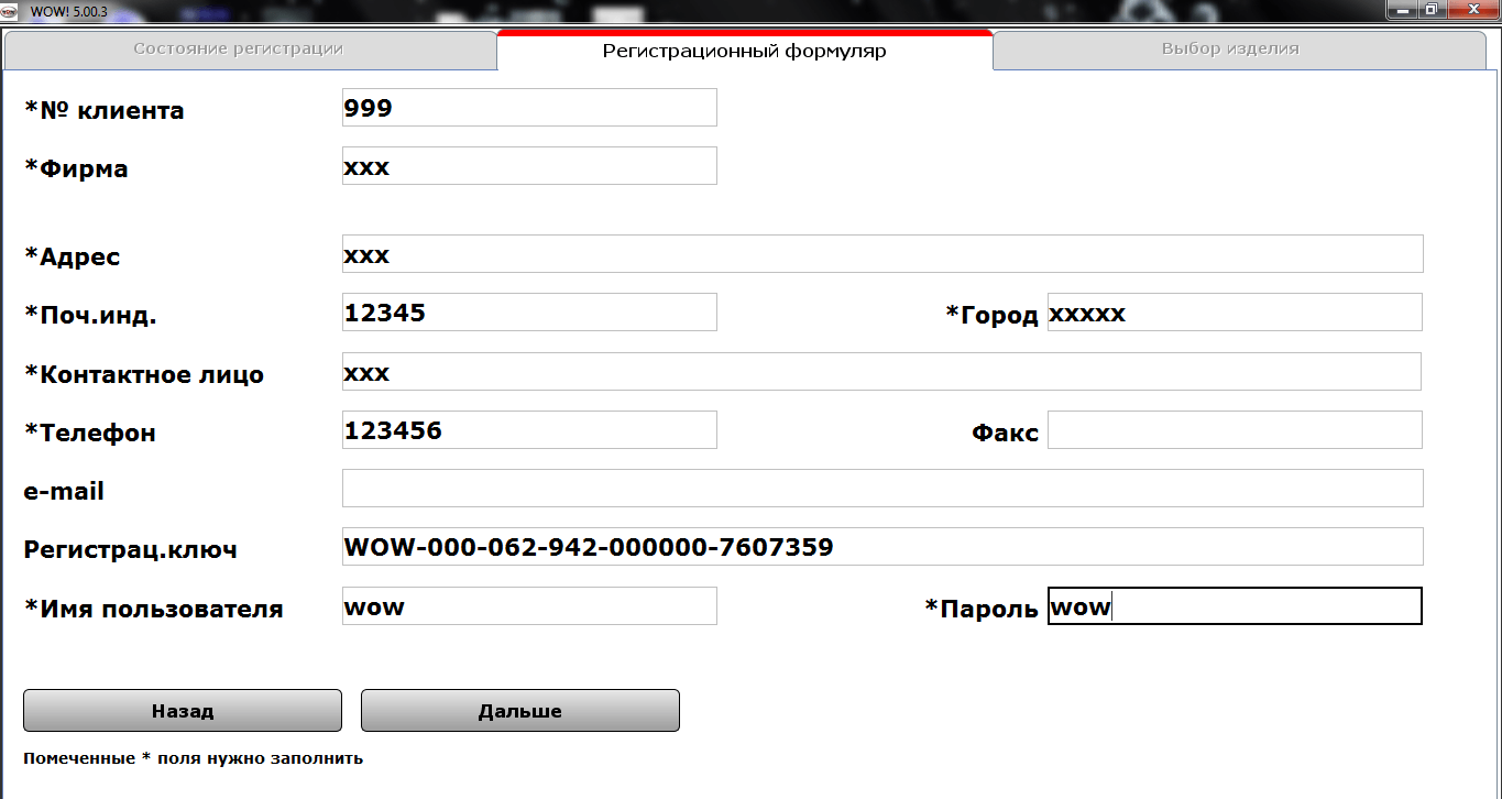 21. Вводим «Имя пользователя» и «пароль», копируем «Регистрац.ключ». Нажимаем «Дальше».