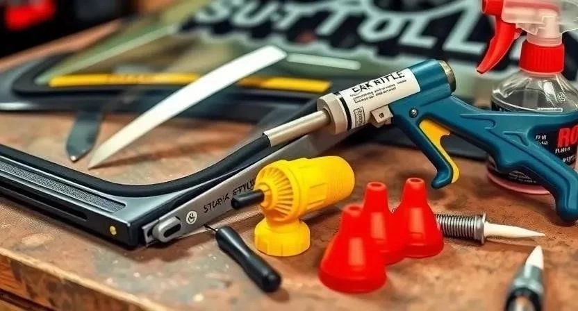 Необходимые инструменты и материалы ‒ Полный список инструментов (съемник дворников, нож, пистолет для герметика, присоски, и т․д․) и материалов (стекло, герметик, праймер, очиститель, молдинг) с артикулами и ценами