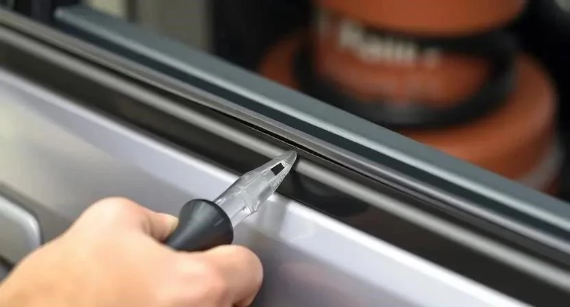 - Какие инструменты необходимы для замены уплотнителя? – Монтажный нож, пластиковые лопатки, очиститель обезжириватель, силиконовая смазка.
