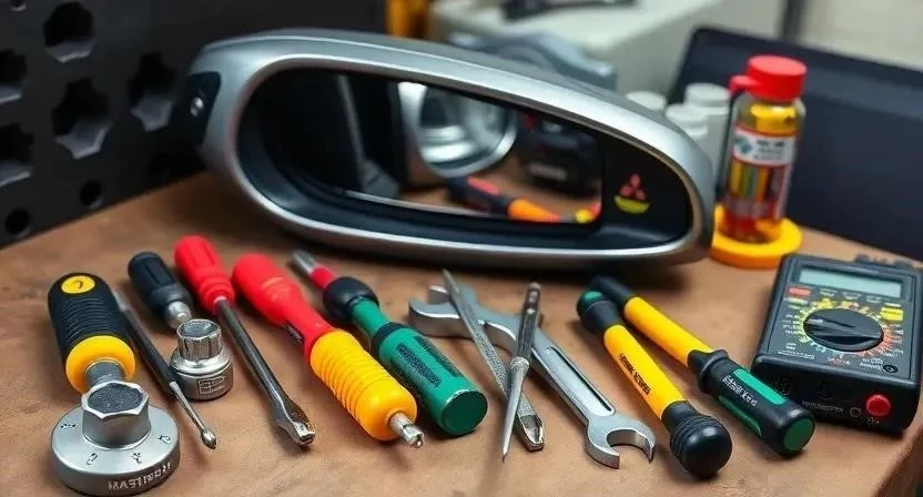 Для замены зеркала Mitsubishi Outlander 3 вам понадобятся следующие инструменты и материалы. Я старалась собрать все заранее, чтобы не отвлекаться в процессе работы. Кстати, некоторые запчасти можно найти на разборках, что значительно снизит стоимость ремонта.
