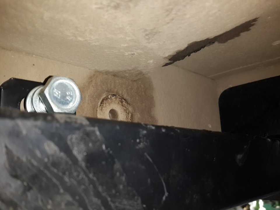 Когда я первый раз заглянул под днище, я жутко расстроился. Дело в том, что отверстий с резьбой, я обнаружил только два. Они были за задним бампером. А на боковых лонжеронах их не было. Я уже приготовился к тому, что придётся сверлить, как – то прихватывать гайки и т. д. ))) Но потом, в надежде чуда))), ещё раз решил внимательно обследовать днище. Присмотрелся и обнаружил, что в предполагаемых местах крепления фаркопа, под заводским слоем антигравия виднеются некие квадратные пробелы. Оказалось что это как раз те самые отверстия с резьбой, просто они были заклеены квадратными кусочками плёнки, и замаскированы сверху антигравием. Под плёнкой оказалась девственно чистая резьба. Приятно, что на «АвтоВаз»е беспокоятся о таких мелочах.)))Прикинул фаркоп по месту и наживил 6 болтов, входящих в комплект. Все отверстия в фаркопе совпали с резьбовыми отверстиями в кузове.