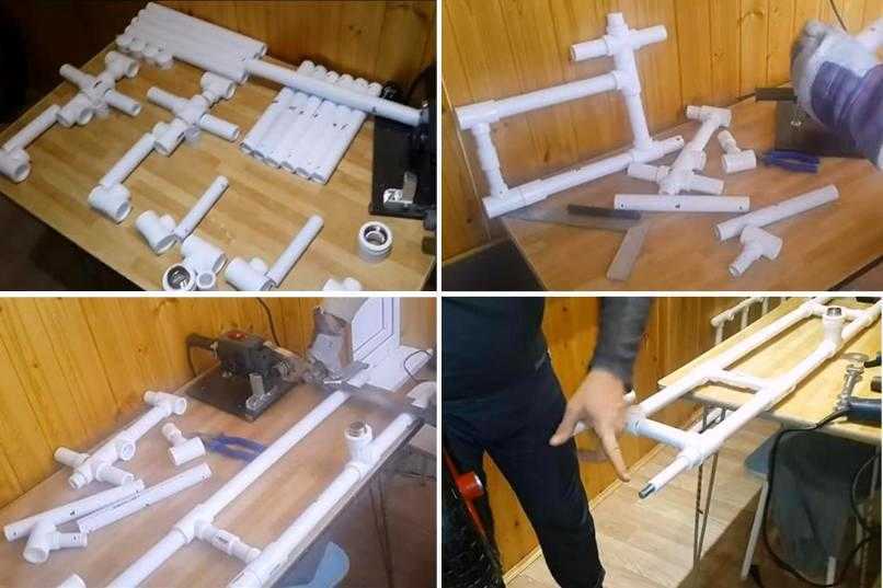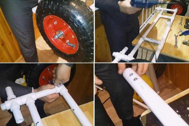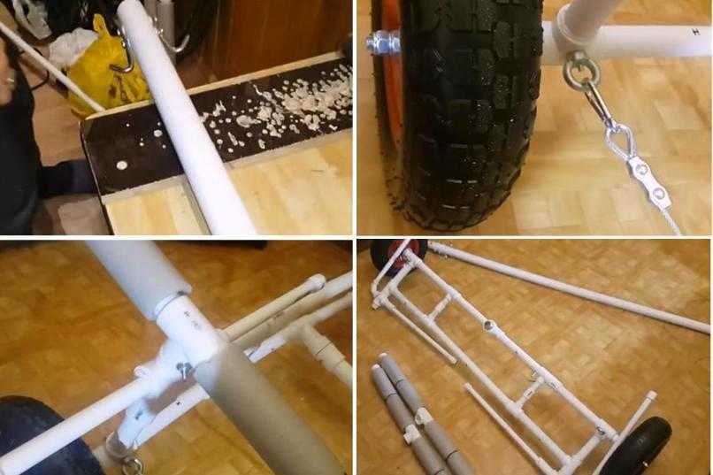 Вариантов исполнения тележек существует множество. В сети интернет можно найти как чертежи, так и видеообзоры изготовления устройств. Мы познакомим вас с самым бюджетным вариантом, которые еще раз доказывает, что дешево – не значит плохо. В качестве основного материала будет использоваться полипропиленовая труба диаметром 32 мм с армирующей вставкой. Из инструмента понадобится: