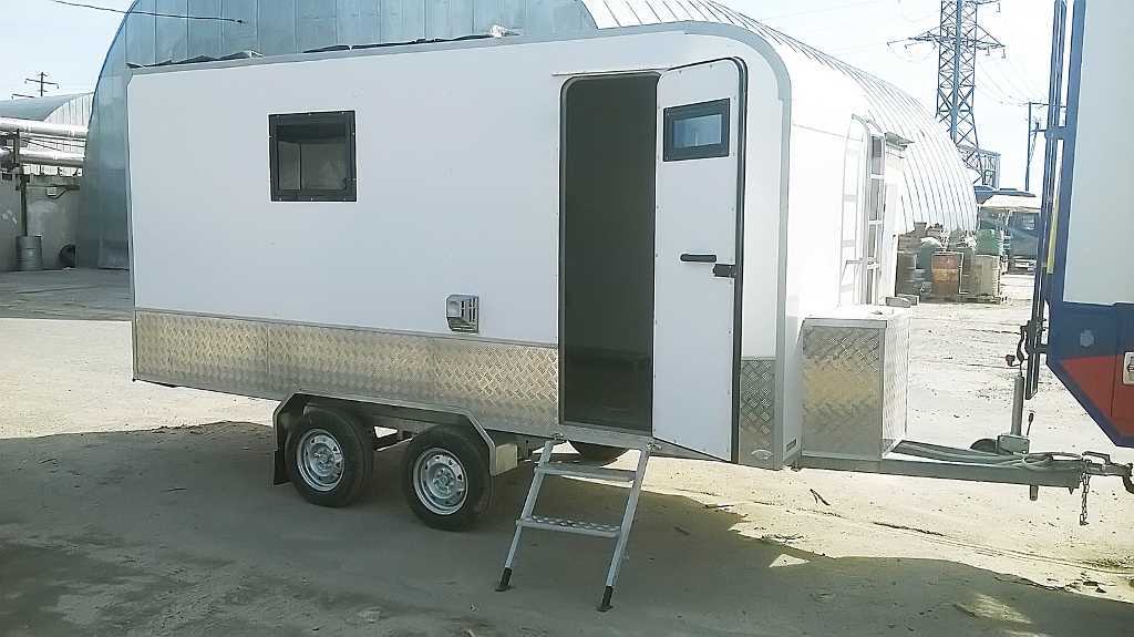 - Прицепы для переезда с домом на колесах. К основе прицепа присоединяется конструкция из дома, потом не совсем необходимые коммуникации для жизни (свет, туалет, кухня, спальня и вода). Отличное средство передвижения для туристических поездок.