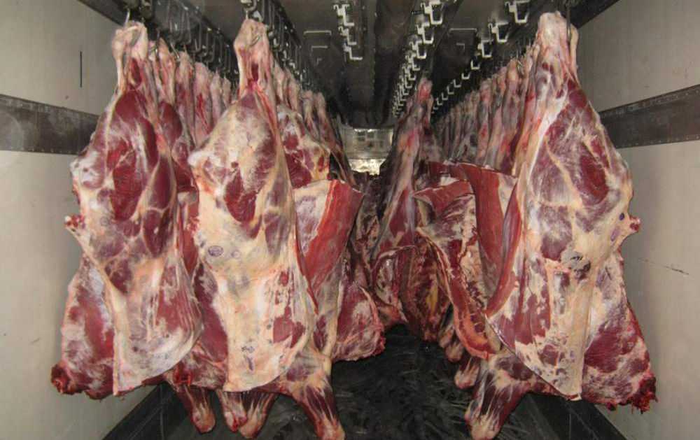 - туши свиней перевозят на крючьях целиком, а крупнорогатого скота — в виде четвертин или полутуш.