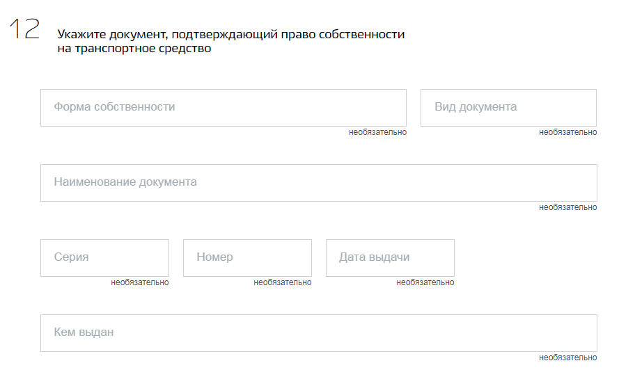 Помимо этого, вы можете внести в анкету данные со страхового полиса и наименование документа, дающего вам права на использование машины. Это условие не обязательное, но при его соблюдении процедура регистрации автомобиля ускоряется в разы. Если вам некогда ждать, лучше последовать рекомендации системы.