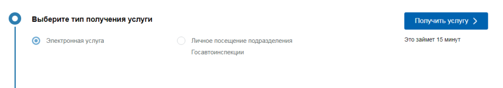 Далее, выбираем тип получение услуги «Электронная услуга» и нажимаем на кнопку «Получить услугу».