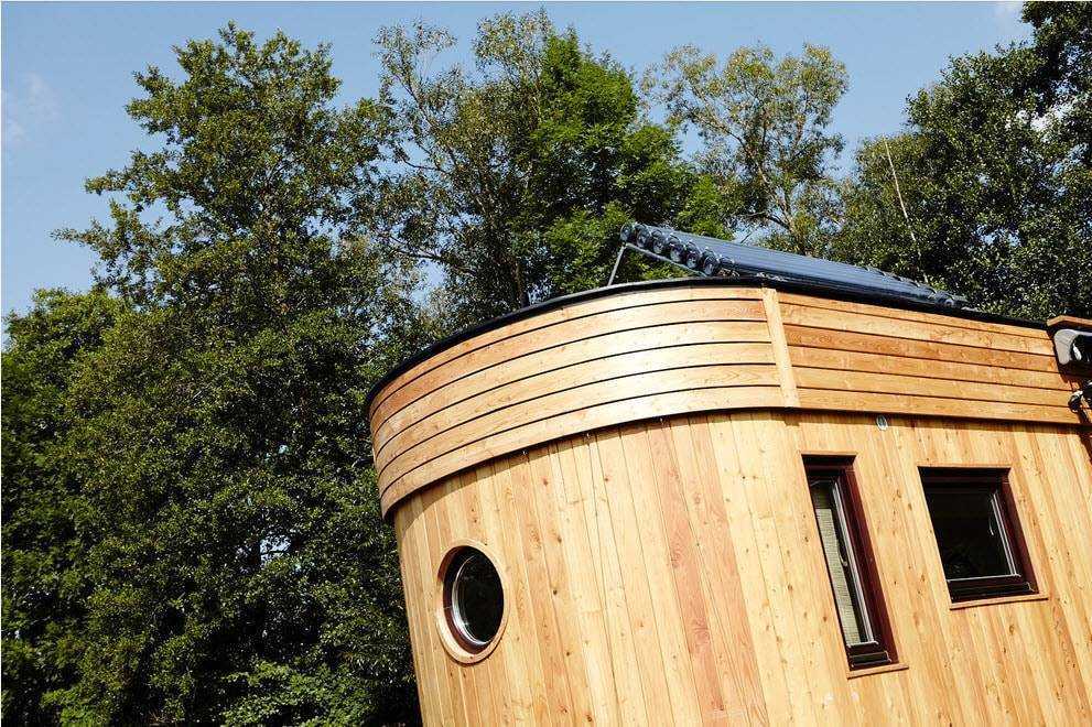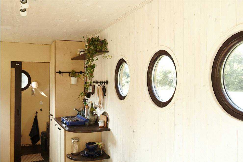 Идея Tiny House Movement пришлась по душе жителям многих стран. Этот дом в виде фургона на колесах находится в Вене. На его территории в 25 кв.м есть все необходимое для жизни – кухня, ванная, душ, кровать, жилая зона. За автономность берут на себя ответственность солнечные батареи, биотуалет, система очистки использованной и дождевой воды (благодаря фильтрам на крыше из болотных растений) и дровяная печь.