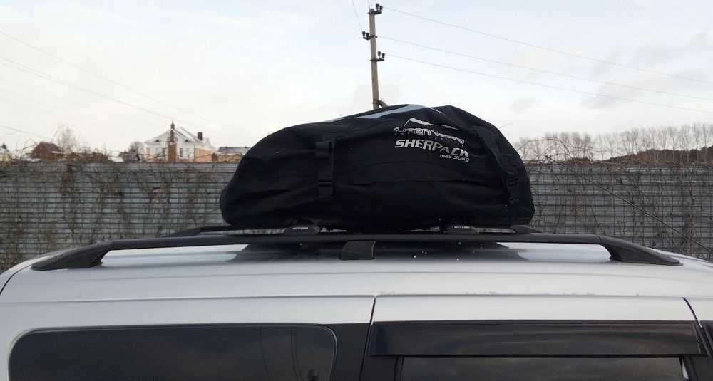 Замыкает наш рейтинг лучших багажников на крышу модель, которая не является классическим автобоксом. SherPack 270 – это багажник-сумка, которую можно прикрепить на рейки или уложить в корзину. Прочность конструкции обеспечивается наличием стального профиля, который не мешает быстрому свёртыванию/развёртыванию багажника. Ёмкость здесь небольшая, 270 литров, но благодаря мягким стенкам в него удаётся впихнуть ненамного меньше багажа, чем в жёсткий 400-литровый корпус. Об этом же говорит и грузоподъёмность чехла – 50 кг.