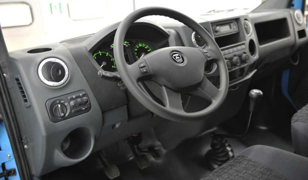 Панель приборов в кабине «ГАЗона» весьма удобна и легко читается. Однако дешёвый и довольно хлипкий пластик панели и всего салона не внушает ни доверия, ни уважения. Внутри стандартной кабины «ГАЗона» стало больше на одно пассажирское место, чем у его предшественника.